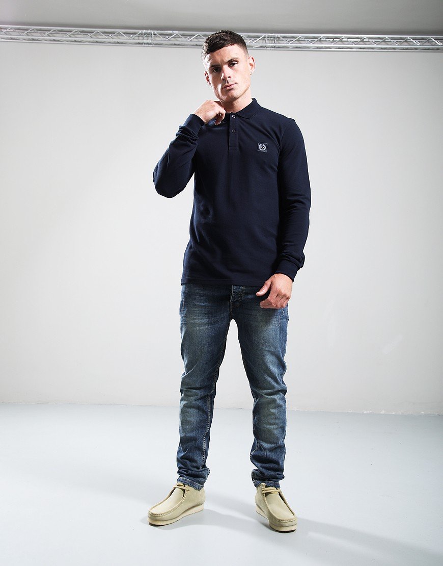 Marshall Artist Marchio Long Sleeve Polo Shirt Navy Navy
