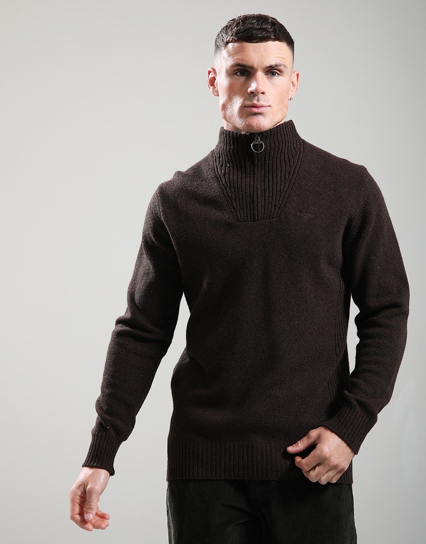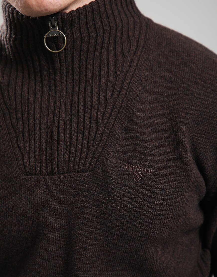 Barbour Essential Lambswool Half Zip Knit Dark Oak Brown