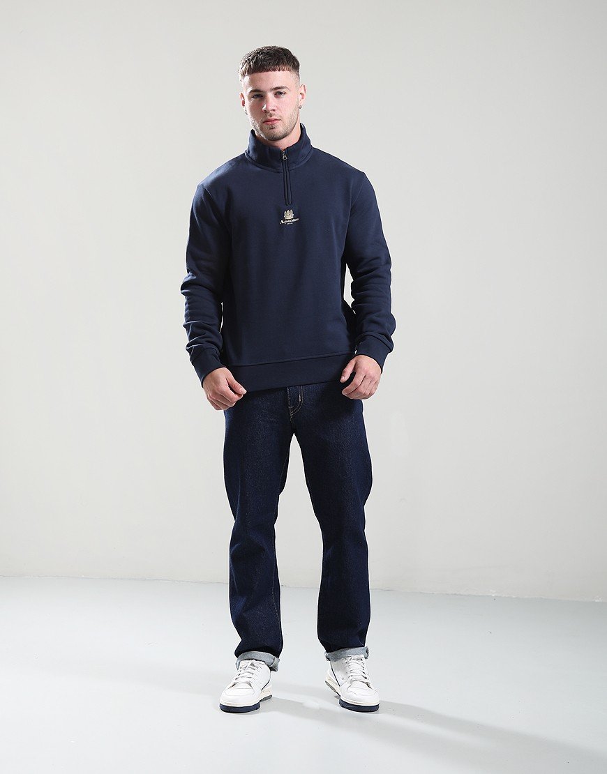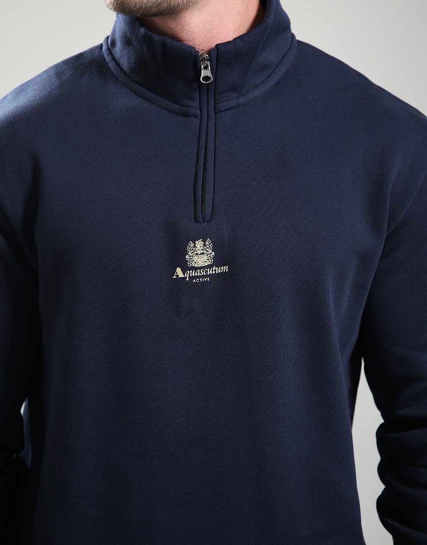 Aquascutum Centered Logo 1/4 Zip Fleece Navy Navy