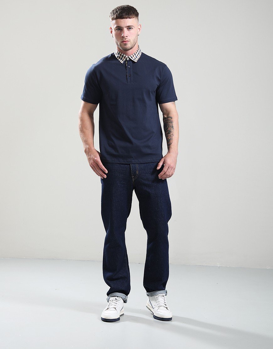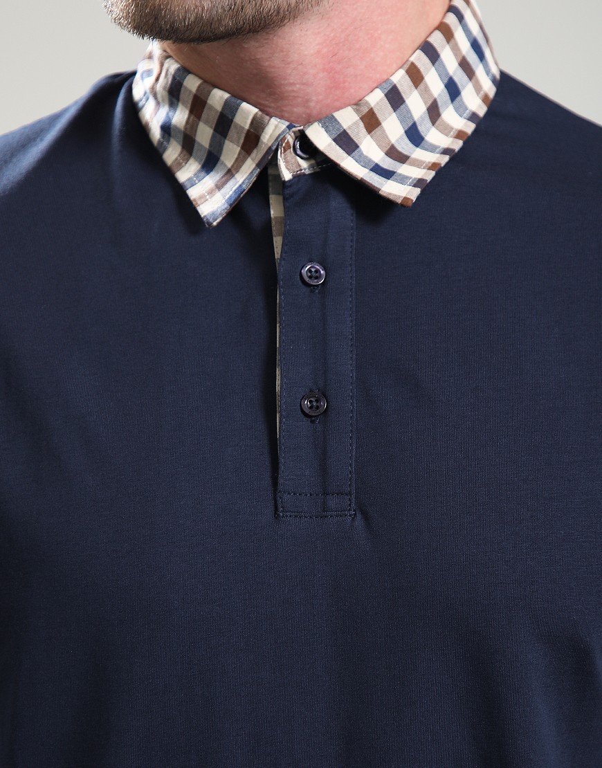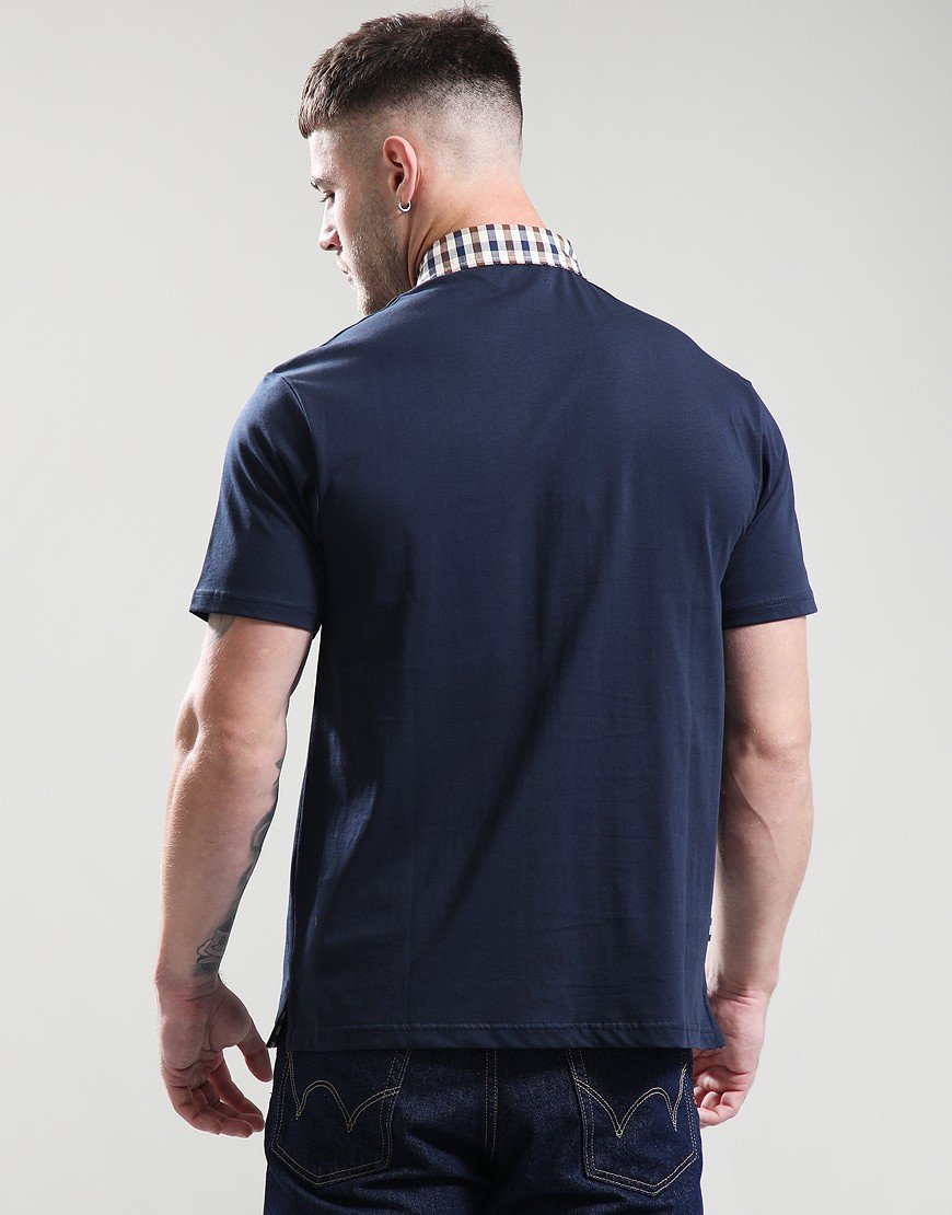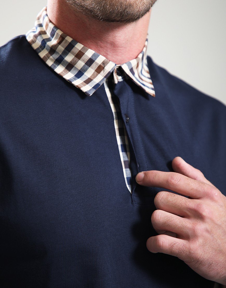 Aquascutum Club Check Collar Polo Shirt Navy Navy