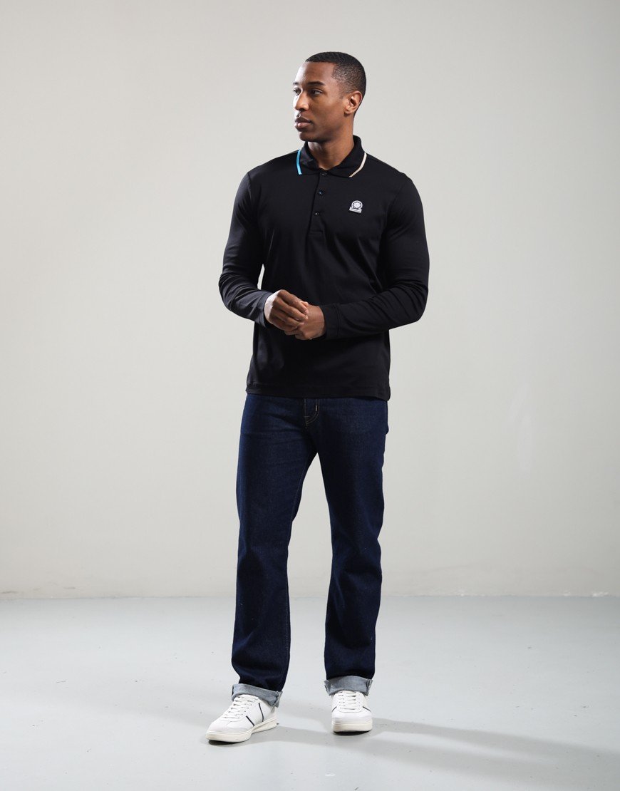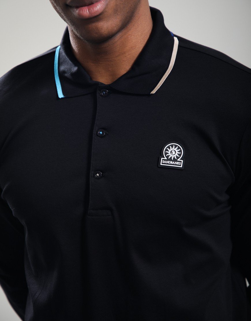 Sandbanks Tipped Collar Long Sleeve Polo Shirt Black Black